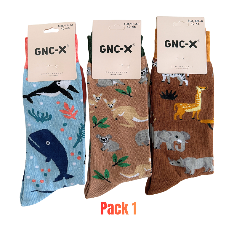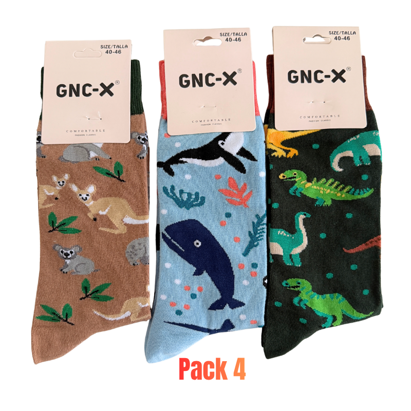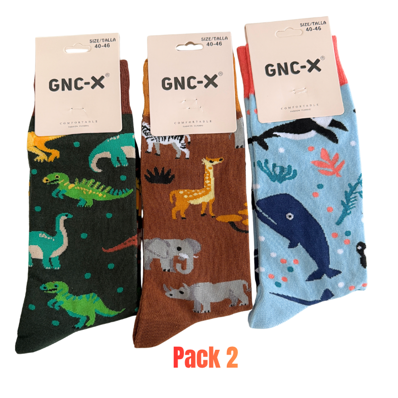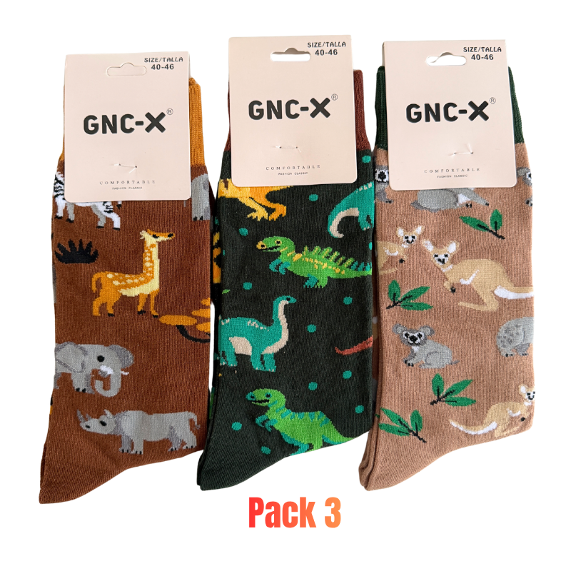 Meias de algodão com padrão de animais, confortáveis e ideais para uso diário. Design original e versátil, em pack de 3 pares.