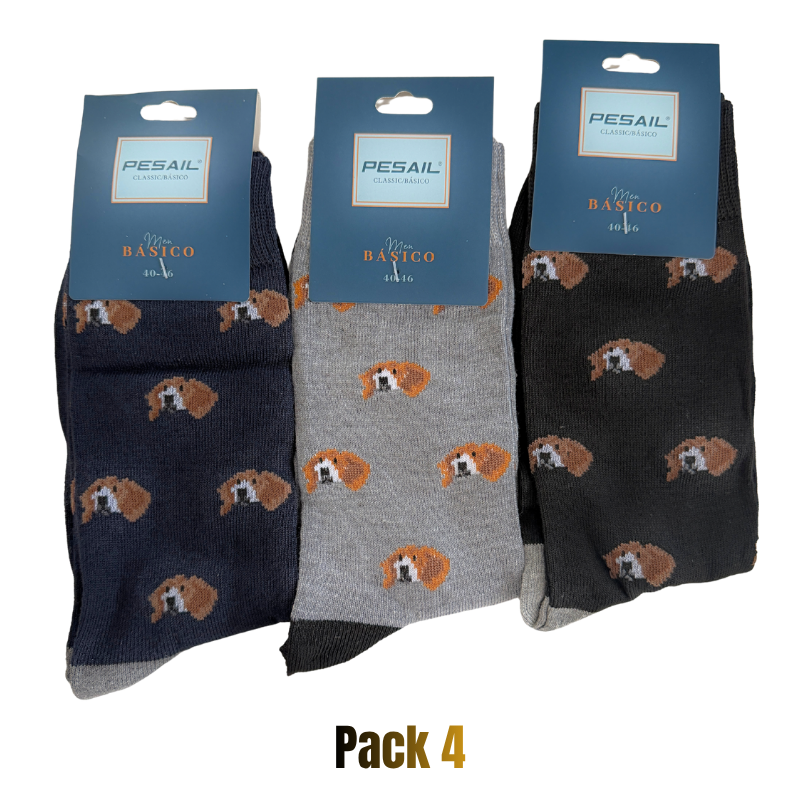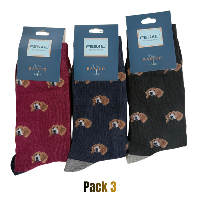 Meias de algodão com padrão de beagles, confortáveis e ideais para uso diário. Design discreto e versátil, perfeitas para o dia a dia. Pack de 3 pares.